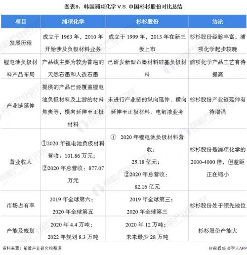 韩国浦项化学V.S.中国杉杉股份对比总结