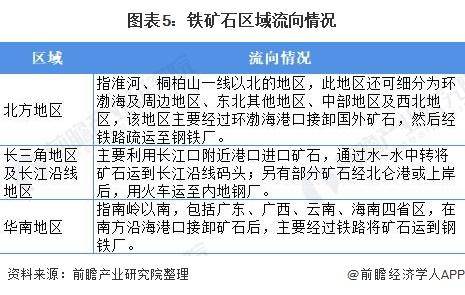 目前我国各省市(自治区)中,河北、山东、北京、上海、内蒙古富余铁矿石较多,为铁矿石的主要流出地,而山西、河南、湖北、江苏、湖南、云南的铁矿石缺乏,为铁矿石的主要流入地。因此,可将国内按纬度划分为三个区域。