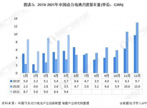 新能源汽车销量快速增长带动了动力电池装车量的增长。2021年5月,我国动力电池装车量共计9.8 GWh,同比增长178.2%。新能源汽车对动力锂电池需求量的增长,动力电池企业订单火爆。