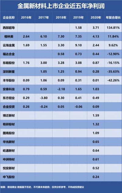 本文为成长能力系列文章之金属新材料篇,共选取10家金属新材料上市企业作为研究样本。