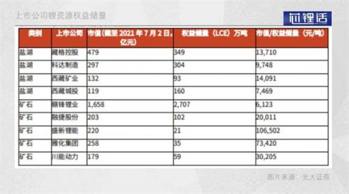 光大证券在一份研报中统计,若以2021年7月2日的市盈率、市销率、市净率和EV/EBITDA四个主流倍数指标,盐湖提锂企业藏格控股(000408)、科达制造、西藏矿业和西藏城投相比矿石提锂企业普遍处于低估状态。