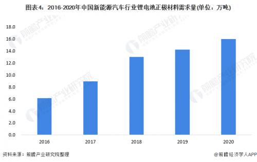 近年来,中国坚定不移的支持新能源汽车发展,推动新能源汽车电池正极材料需求增长。每kWh动力锂电池装机量按2kg正极材料的用量计算,则经初步测算,2020年中国动力锂电池正极材料需求量约为16万吨,同比增长13%。