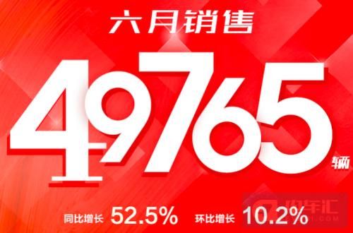 电车汇消息:昨日,比亚迪汽车发布了6月产销快报,单月销量49765辆,同比增长52.5%,环比增长10.2%。其中新能源乘用车的销量为40116辆,纯电动汽车销量20016辆,插电混动版车型销量20100辆,占比相当。