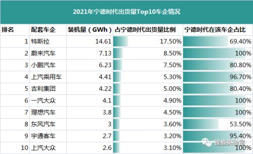 数据显示,2021年宁德时代的出货量中,特斯拉是最大客户,占比约为17.5%,而宁德时代在特斯拉的供应商中目前占比约为69.4%。