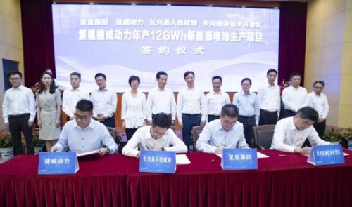 7月31日,复星、捷威动力与湖州市长兴县人民政府签署项目投资合作协议,三方就捷威动力12GWh新能源电池项目合作达成共识。湖州市人民政府副市长项乐民,中共长兴县委书记石一婷,复星国际执行董事、联席董事长汪群斌,复星全球合伙人、复星国际副总裁、汽车科技集团董事长张良森,复星全球合伙人、汽车科技集团总裁、捷威动力董事长王立普,捷威动力CEO闾陈立等出席活动,中共长兴县委副书记、县长沈志伟主持签约仪式。