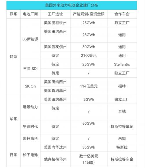 更何况,除了宁德时代之外,还有不少华系的动力电池企业,准备来美利坚“闯一闯”。