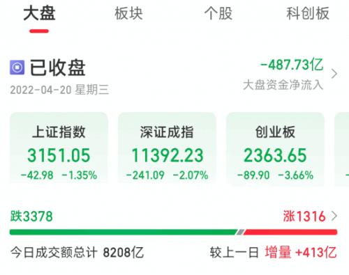 4月20日,创业板一片惨烈,龙头股大跌拖累创业板指,创业板指下跌3.66%至2363.65点,创下年内新低,今年以来,创业板指累计跌幅达28.86%。