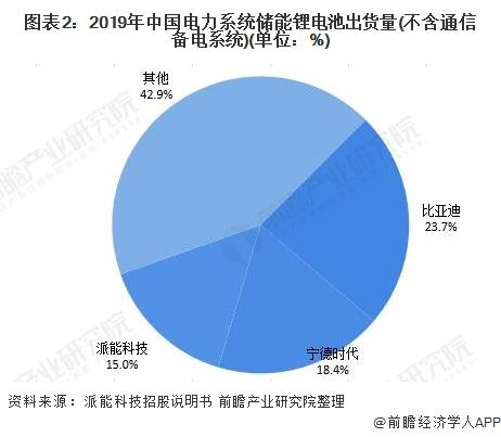 根据派能科技招股说明书,2019年,电力系统储能锂电池(不含通信备电系统)出货量前三名企业分别为比亚迪、宁德时代与派能科技,占我国电力系统储能锂电池出货总量的23.7、18.4%与15.0%。电力系统储能锂电池(不含通信备电系统)市场集中度较高,CR3达57.1%。