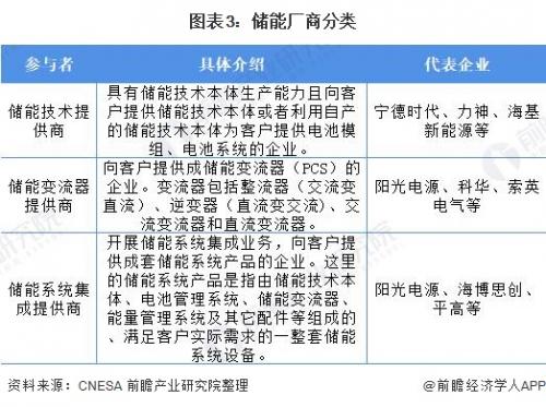 储能厂商可分为技术提供商、变流器提供商与系统集成商三类
