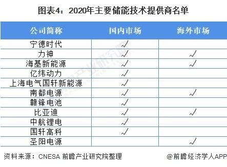 根据CNESA的统计,2020年,新增电化学储能项目主要储能技术提供商(按装机规模)包括宁德时代、力神、海基新能源等;其中,力神、海基新能源、南都电源、比亚迪在国内与海外的装机规模均排名前列。