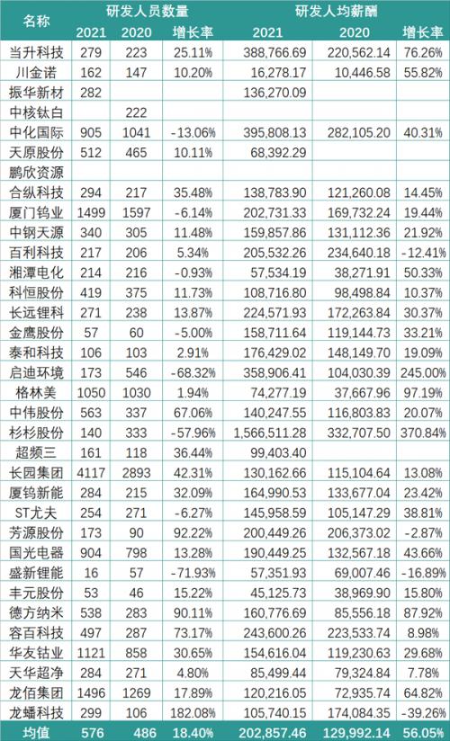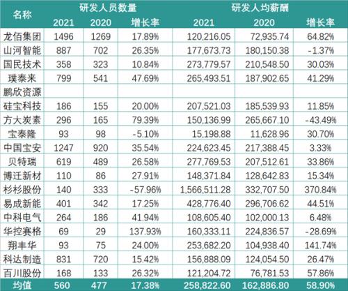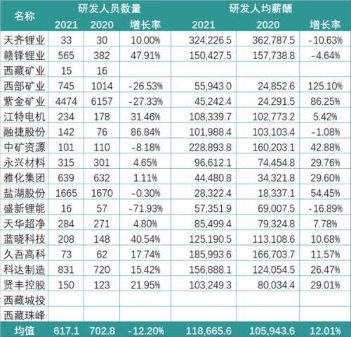而这一特征在研发人员数量上的体现也极为显著:天齐锂业2021年仅拥有33位研发人员,而赣锋锂业则坐拥近600位技术人员。