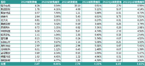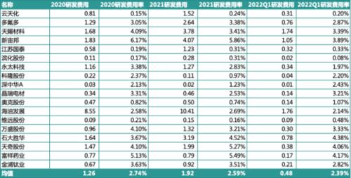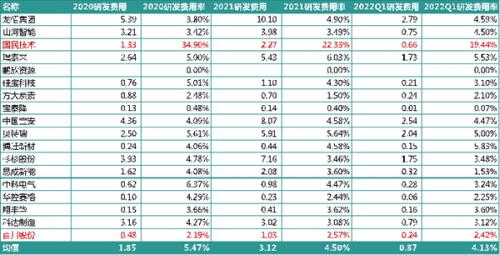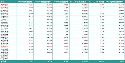 2022年一季度,平均研发费用率更是不足2%。
