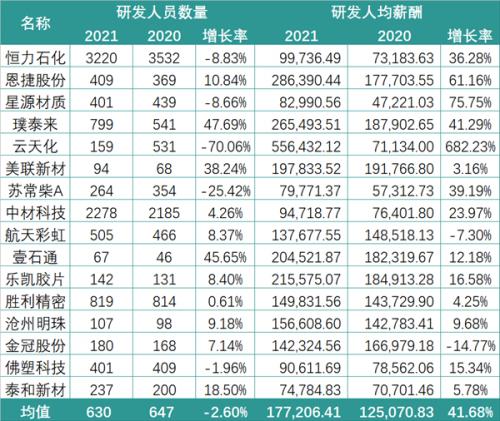 就研发人员而言,收入数倍于星源材质的恩捷股份的人数并没有拉开太大差距;而拥有最多研发人员的则是恒力石化和中材科技。