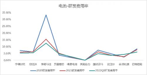 对于电池厂商来说,2021年过得并不容易,上游原材料涨价给电池企业带来了巨大经营压力,毛利率普遍下滑。或许基于控制成本的考虑,研发费用率也随之出现了显著下降,由此前的7%下降到5%区间。