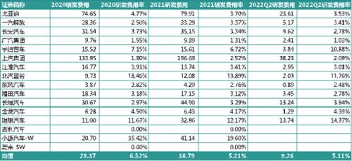 整车厂:研发费用率同样下滑