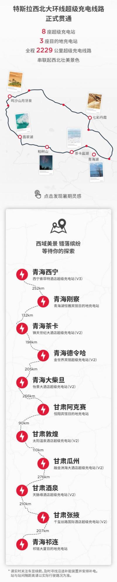 8月4日,据特斯拉官方消息,自西宁出发,长达2229公里的青甘大环线超级充电线路正式贯通。