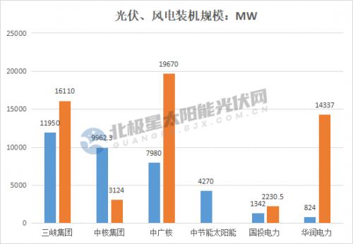 风电方面,三峡、华润、中核、中广核和国投电力总装机超55.47GW,约占全国风电装机17%,中广核、三峡集团和华润电力装机突破15GW。