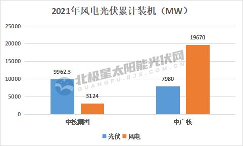 中核集团截至2021年底光伏装机9.96GW,风电装机3.12GW,水电装机2.87GW。