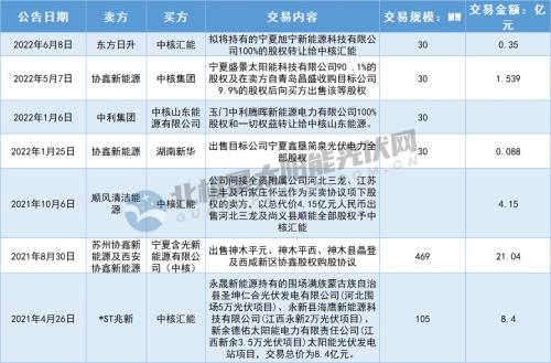 中核集团新能源扩张以开发与收购并举,不仅在大型电站、整县分布式光伏方面大动作不断,在电站收购上,据北极星太阳能光伏网统计,2021年以来中核旗下中核山东、湖南新华及中核汇能收购光伏电站规模近700MW,交易金额超35亿元。
