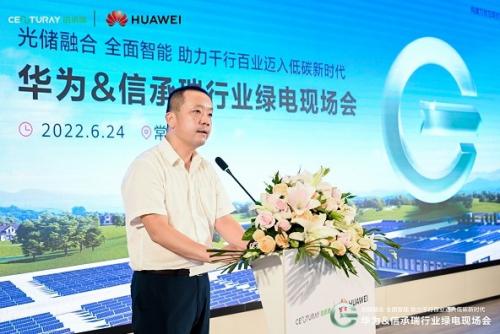 2022年6月24日,由华为与信承瑞公司主办的“光储融合,全面智能,助力千行百业迈入低碳新时代”行业绿电现场会在常州举行。常州市工业和信息化局副局长沈新峰、信承瑞技术有限公司常务副总裁许宏、华为智能光伏军团储能军团长尹飞军等领导莅临现场致辞发言,业界产学研专家、行业同仁共聚一堂,探讨储能与新型电力系统融合的发展趋势和未来机会,助推产业绿色低碳发展。