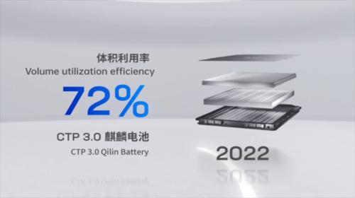以目前动力电池行业的实际产品表现来对比,有模组的动力电池体积利用率大概是40%,2019年宁德时代的第一代CTP技术已经将体积利用率提升到了55%,而到了这次第三代的“麒麟电池”,宁德时代已经将体积利用率提到了惊人的72%。