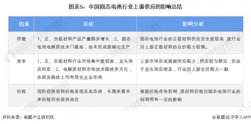 综合上游市场情况,文章总结中国固态电池行业上游供应的影响如下: