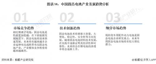 文章从市场竞争、技术创新、细分市场等方面对中国固态电池行业发展趋势进行预判如下: