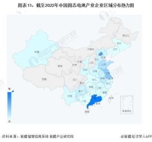 从中国固态电池产业链企业区域分布来看,固态电池产业链企业主要分布在广东、北京、上海、江苏等地区,主要系以上地区经济实力、科研实力较强,相关产业布局较为完善。
