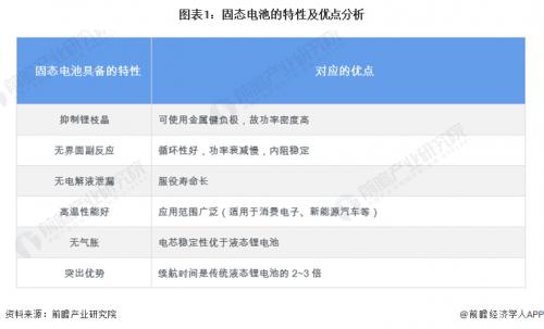 固态电池是指采用固态电解质的锂离子电池。与传统锂电池相比,全固态电池最突出的优点是安全性。固态电池具有抑制锂枝晶、无界面副反应、无电解液泄漏、高温性能好、无气胀的特性,前瞻汇总固态电池具备特性及其相应优点如下: