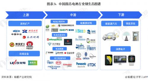 分析中国固态电池行业生态图谱可知,前瞻认为固态电池生产商垂直一体化能力强。电池芯材料制备环节厂商包括杉杉股份、天齐锂业、赣锋锂业、天丰新材等新能源材料生产商,也有宁德时代、清陶能源等动力电池生产企业,还包括丰田等车企,企业类型多样,切入方向多元。
