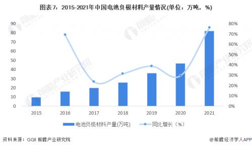 目前国内市场上,石墨类负极材料技术较为成熟,已经实现产业化,在满足国内市场需要的同时供给全球市场,2021年中国负极材料的全球市占率由2020年的85%提升到92%。2021年中国负极材料产量为81.59万吨,同比上升76%。