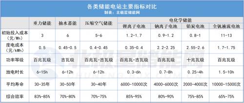 下面我们就参考多方数据,从成本投入、度电成本和使用寿命等指标来对重力储能电站和其他储能电站进行指标横向比较。