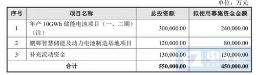 鹏辉能源募集资金将主要用于拓产扩能。其中,24亿元将投向“年产10GWh储能电池项目(一、二期)”。该项目总投资额为30亿元,通过新设子公司实施。项目一期5GWh储能锂离子电池产能,建设期为16个月;项目二期5GWh储能锂离子电池产能,建设期为18个月。项目主要生产锂离子电池和锂电池系统,用于储能市场领域,可形成年产10GWh储能锂离子电池的产能。