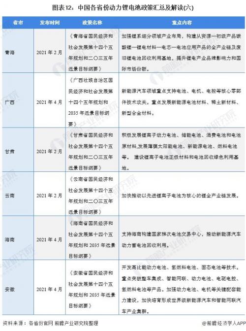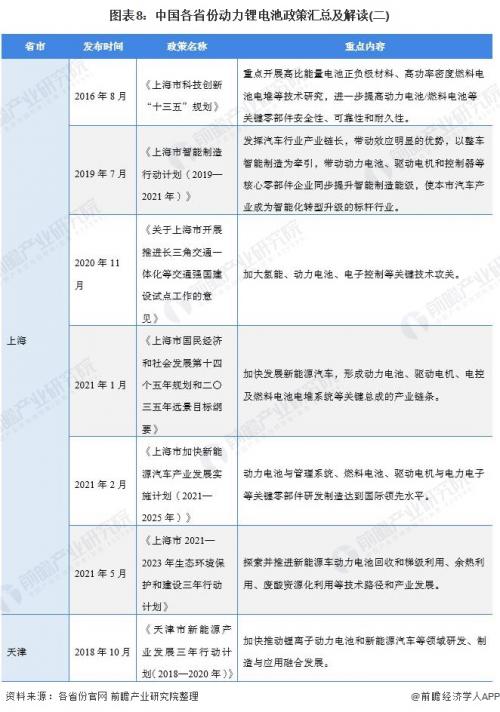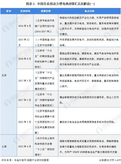 ――重点省市动力锂电池行业政策汇总