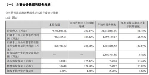今年第三季度,万亿“宁王”平均每天都净赚1亿元!