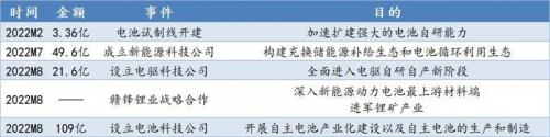 2022年2月开建了电池试制线;2022年7月构建电池循环生态;2022年8月宣布和头部的锂供应商赣锋锂业达成战略合作,打通上游原材料供应;随后斥资109亿成立了电池科技公司,目标是为了实现自主供应动力电池。