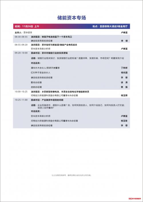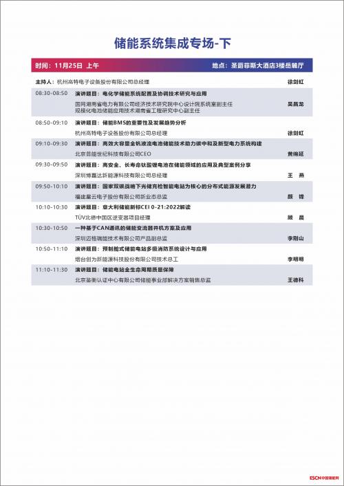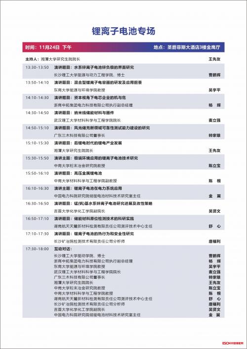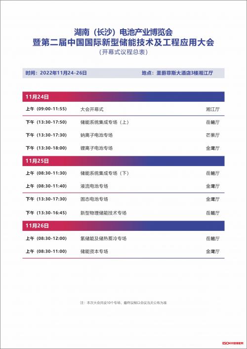 第二届中国新型储能技术及工程应用大会将安排大会开幕式暨院士专家主题报告、储能系统集成专场(上、下)、锂离子电池专场、钠离子电池专场、液流电池专场、新型物理储能技术专场、固态电池专场、氢储能及储热专场、储能资本专场等10个专场论坛。为期三天的会议,主办方将邀请100余家产学研机构及上下游产业链企业联合支持,100余位行业主管部门领导、院士、专家以及优秀企业代表做主题分享。