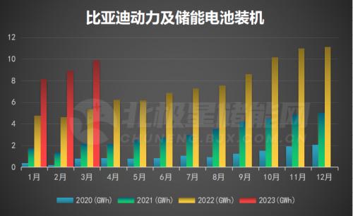北极星储能网获悉,根据比亚迪公布的产销数据,2023年第一季度比亚迪已实现动力电池及储能电池装机总量约26.99GWh,对比2022年一季度同比增长83.14%。