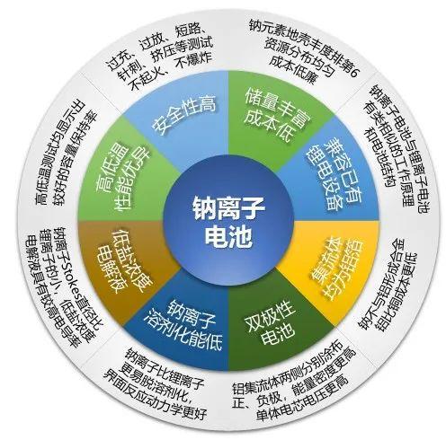 钠离子电池正极材料为氧化物。聚阴离子类等,负极材料主要是硬碳和软碳等碳材料,连接正负极材料的集流体都用铝箔。因此,钠离子电池具有较好的功率特性、宽温度范围适应性、安全性能和无过放电问题。