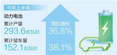 记者从中国汽车动力电池产业创新联盟获悉:今年上半年,我国动力电池累计产量达293.6吉瓦时,同比增长36.8%;累计装车量152.1吉瓦时,同比增长38.1%;累计出口达56.7吉瓦时。