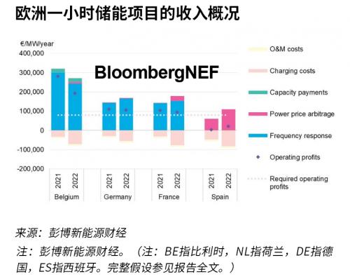 2022年,超过80%的收入来自英国、爱尔兰、德国、法国、比利时和荷兰的频率响应。频率主导的商业案例的利润极其丰厚,比利时一小时电池储能的年收入高达20万欧元/MW。