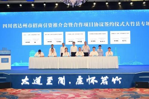2023年8月5日,四川省达州市招商引资推介会暨合作项目协议签约仪式大竹县专场在深圳举行,大竹县共集中签约5个项目,计划投资总额234.9亿元,项目涵盖电子信息、智能装备、轻纺服饰等领域。