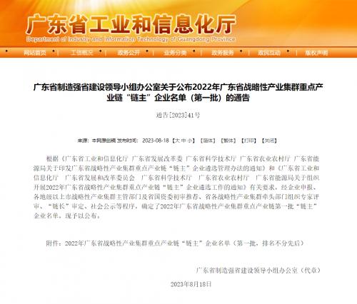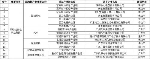 广东省战略性产业集群重点产业链首批“链主”企业名单