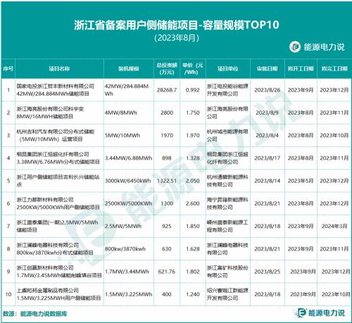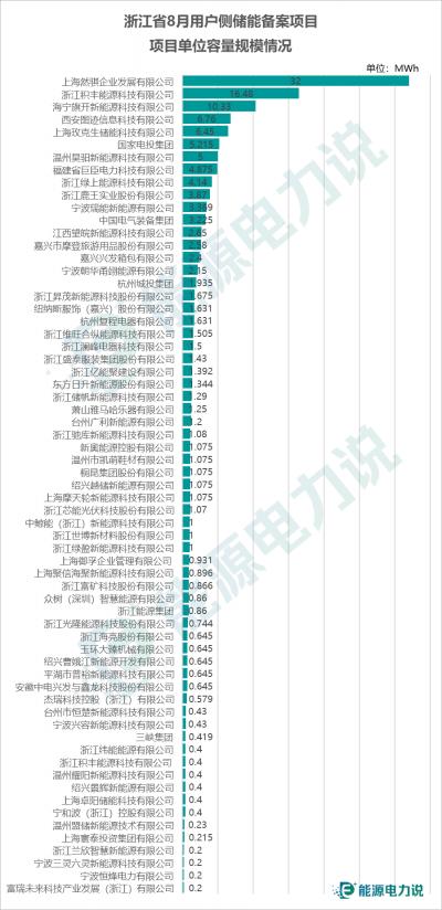 据不完全统计,8月浙江省储能相关的备案项目126个,其中产业类项目17个;项目类109个,其中光储一体项目1个,用户侧储能项目108个,总规模超115.4MW/438.6MWh。