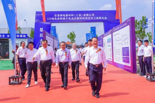 9月16日上午,“东渐集团*乐普钠电新材料(六安)有限公司2万吨先进钠离子电池正极材料项目暨全景数字零碳工厂开工动员大会”于六安举行。