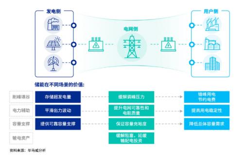 从整个电力系统的角度看,储能的应用场景可以分为发电侧储能、输配电侧储能和用户侧储能三大场景。