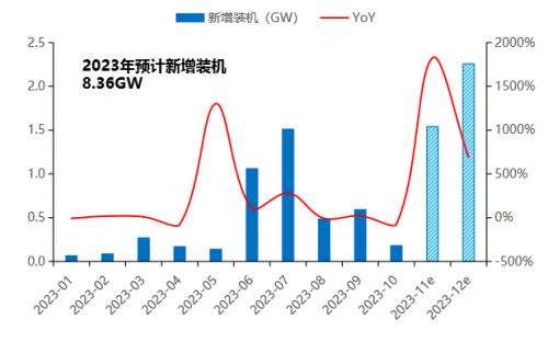 总的来看,EIA预计2023年全年装机8.36GW,上个月给出的预期值是8.55GW,略有下修。EIA预计24年全年装机14.91GW,与上月预期基本持平。调整之后,24年的增速上修到78.4%。