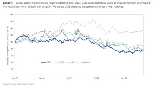 摩根士丹利指出,2024年,搭载宁德时代电池的电动汽车模型周期看起来非常稳健,有助于超级充电和CTP3.0产品的推广。