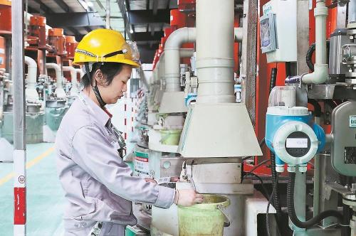 在青美实验室,科研人员正对反应釜中提取出的材料性质进行检测分析。雷杰告诉记者,三元前驱体材料并不是直接应用于锂电池生产,下游客户还需在其中“嵌入”锂元素后才能作为锂电池生产的正极材料,因而不同客户对三元前驱体结构要求是不同的。为快速满足客户精细化需求,目前青美设置了两条专用于研发三元前驱体材料新产品的试验线,基于企业现有的设备和研发能力,一般一个多月便能将客户定制的三元前驱体材料交付使用。