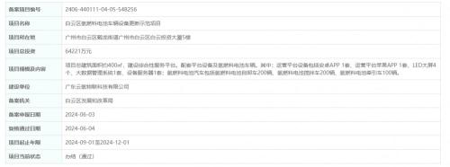 近日,白云区氢燃料电池车辆设备更新示范项目获得备案。